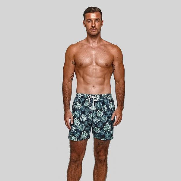 Der auffällige tropische Aufdruck der Grove-Badeshorts hat sie diesen Sommer zu einem der Favoriten gemacht. Ihre tropisch grünen Blätter vor einem schwarz-grauen Hintergrund sind ein moderner Trend-Look, der am Strand zu Hause ist. Ziehe ein weisses oder schwarzes Hemd an und gehe stilvoll ins Restaurant.