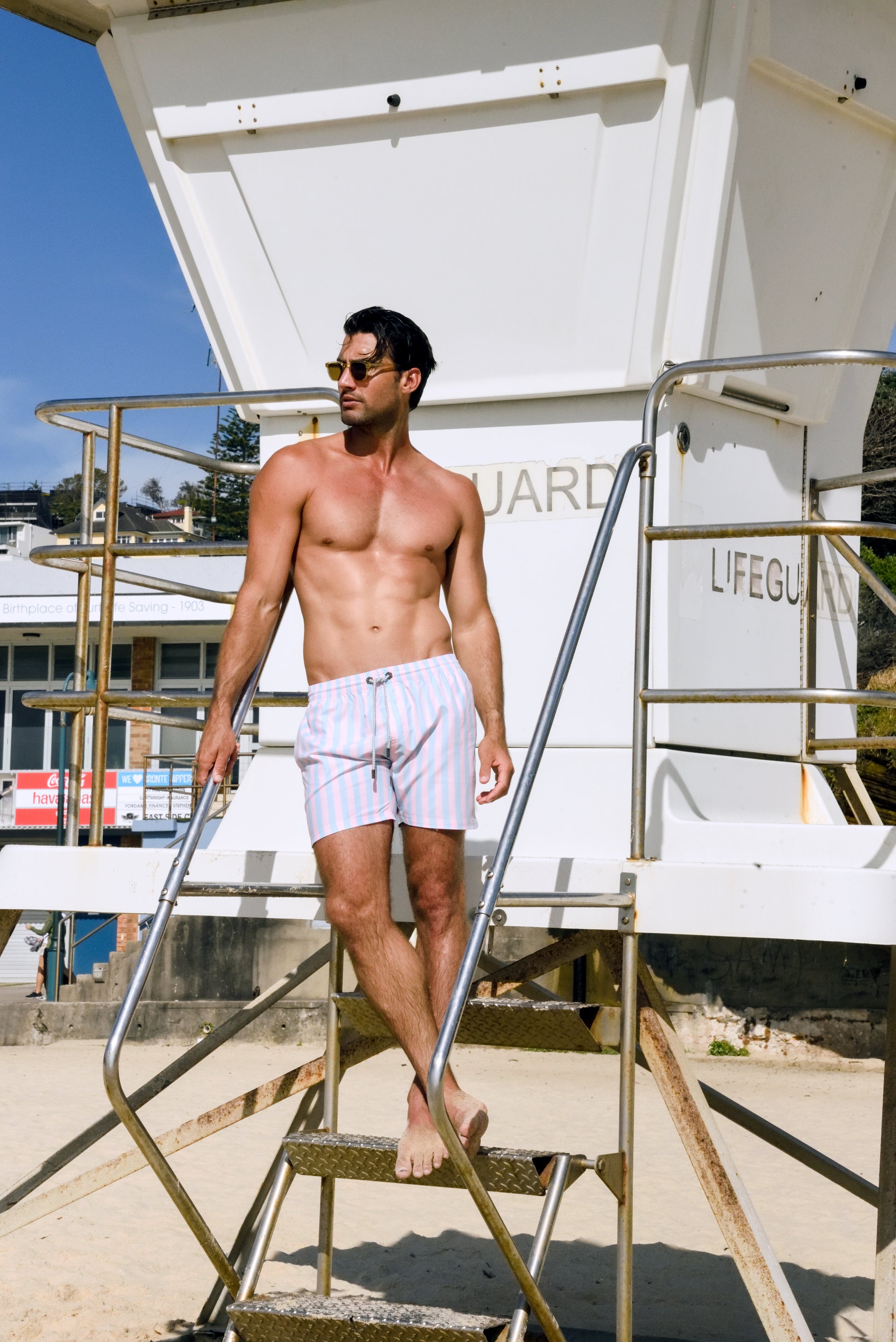 Mach dich bereit für einen Italienurlaub in deiner Woodstock Herren Badehose. Die perfekte Kombination aus blauen und rosa/korallenen Längsstreifen macht diese Badehose so cool wie deinen letzten Urlaub am Mittelmeer.